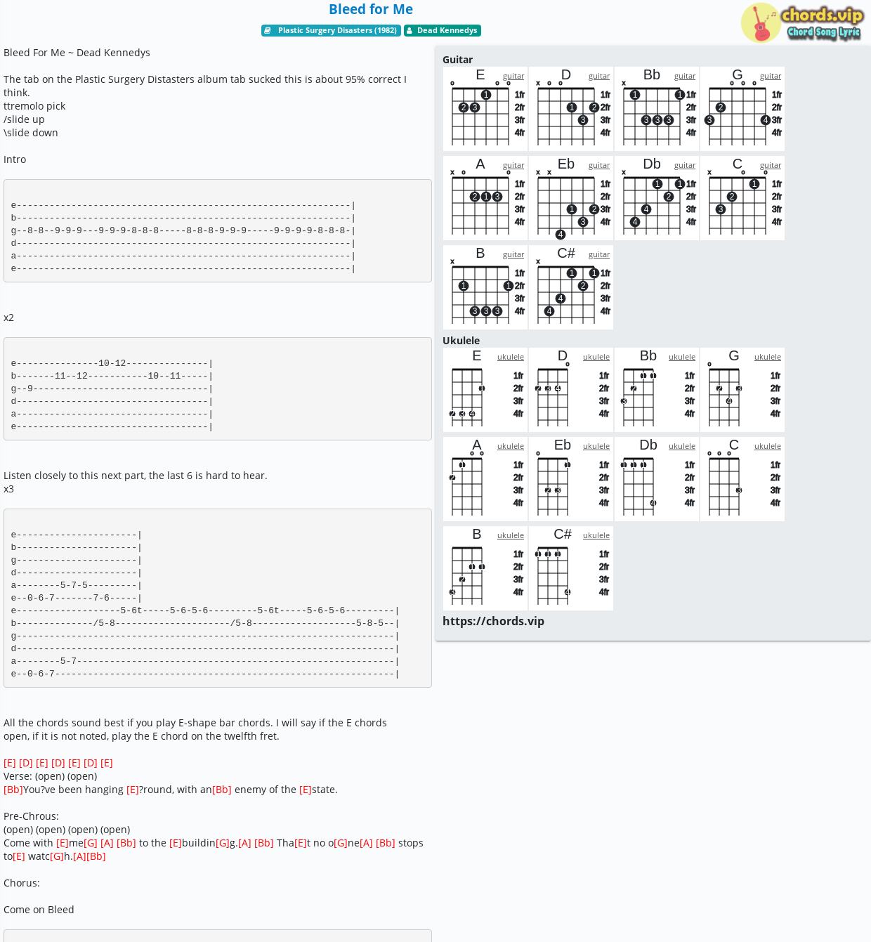 The tab on the Plastic Surgery Distasters album tab sucked this is about 95% correct I think.