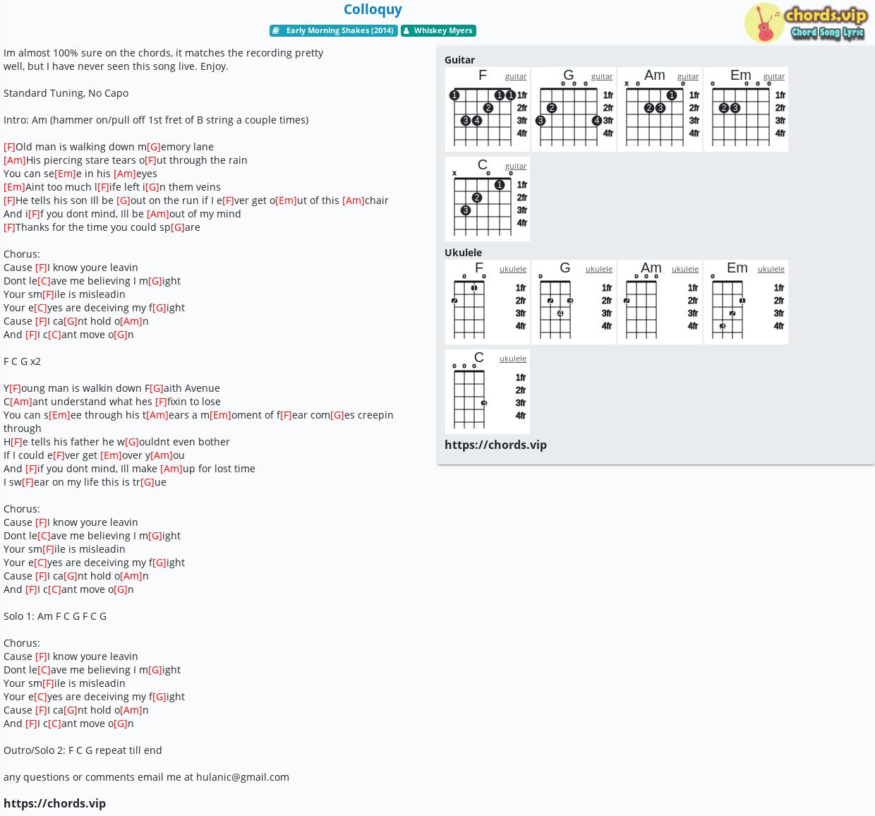 Outro/Solo 2: F C G repeat till end