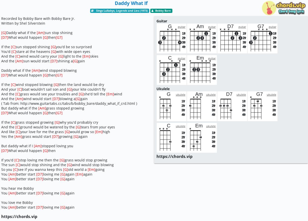 ( Tab from: http://www.guitartabs.cc/tabs/b/bobby_bare/daddy_what_if_crd.html )