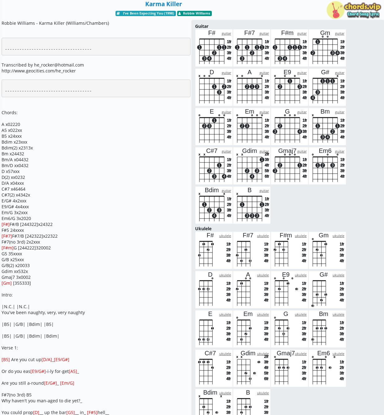 Robbie Williams - Karma Killer (Williams/Chambers)