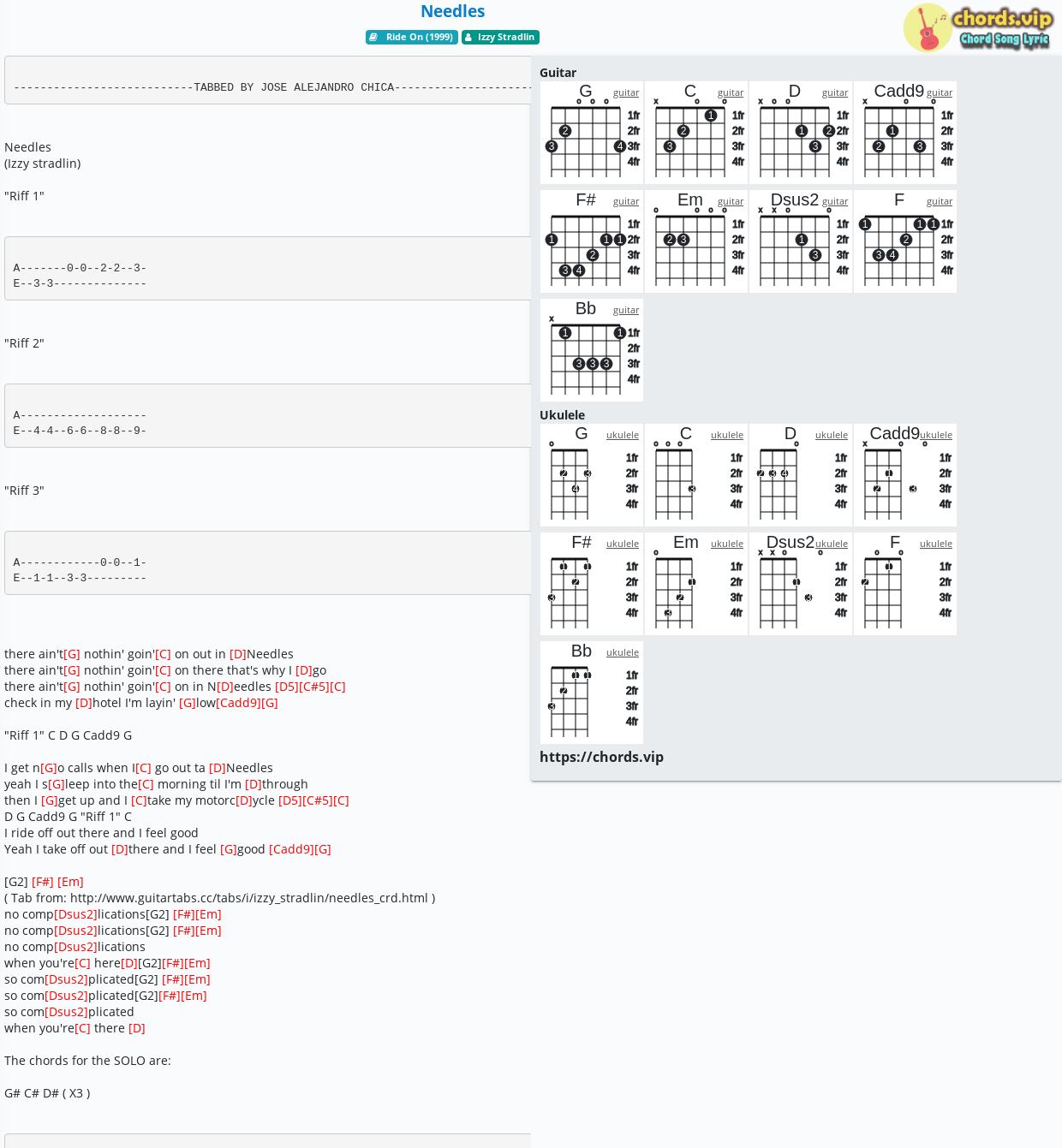 ( Tab from: http://www.guitartabs.cc/tabs/i/izzy_stradlin/needles_crd.html )