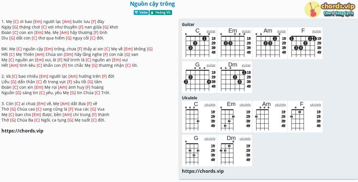 Hết Am tình kêu C khấn con F tin chắc Mẹ G thương nhận C lời.