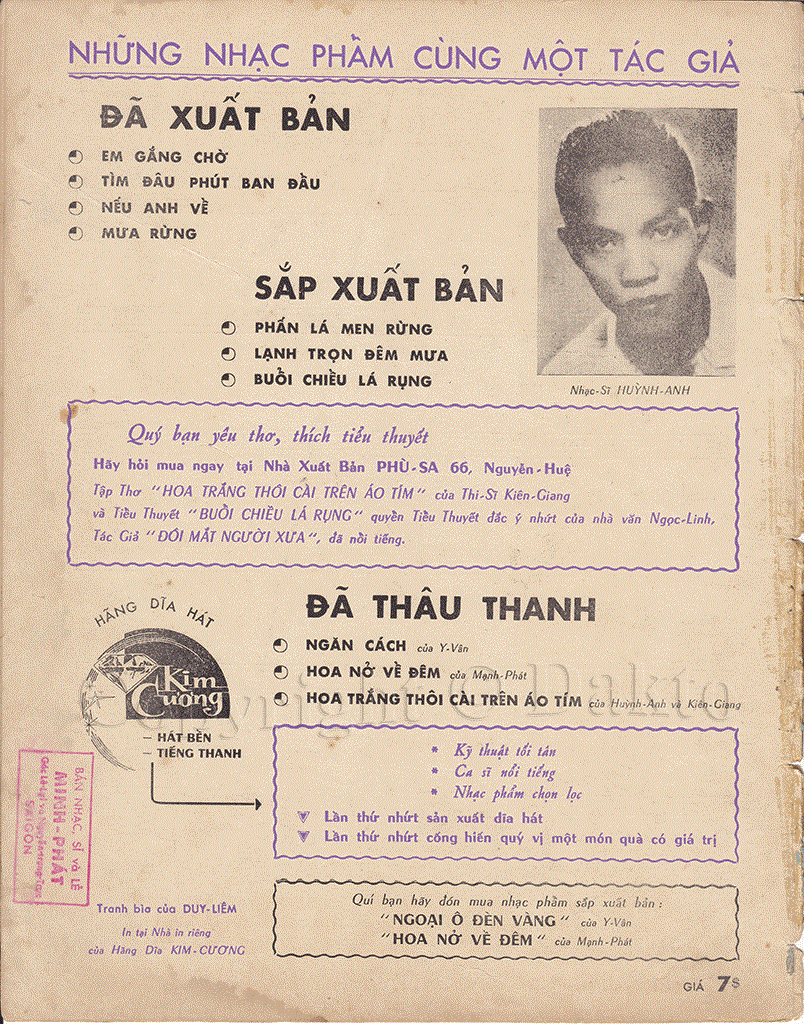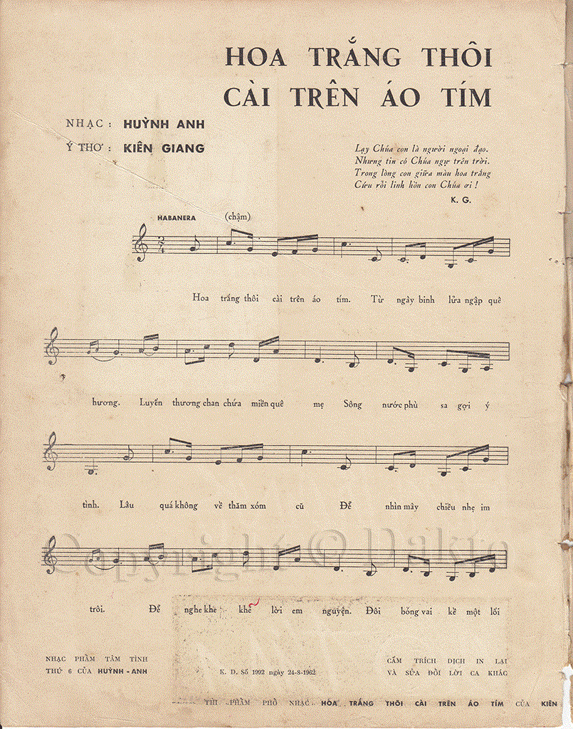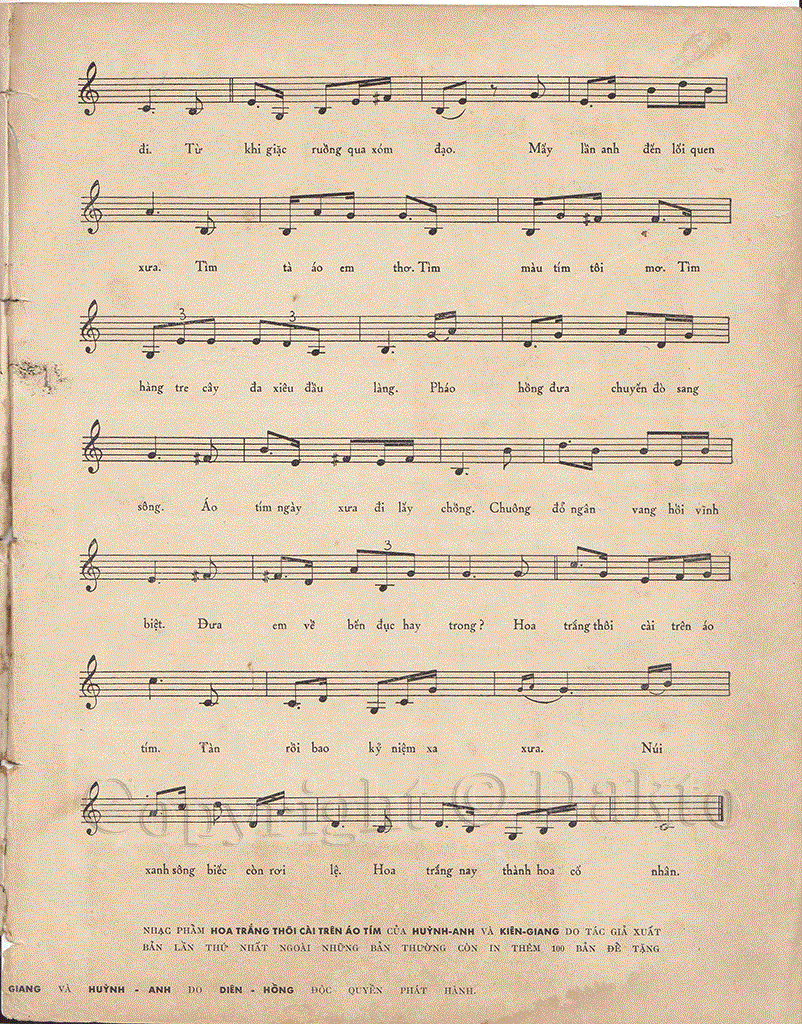 Sheet of song: Hoa trắng thôi cài trên áo tím