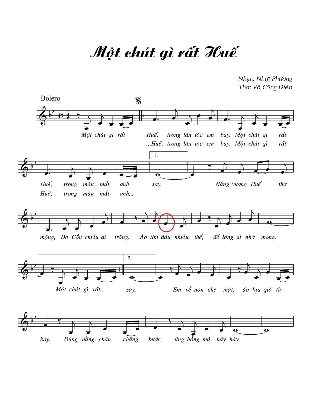 Sheet music, node, guitar pro tabs song: Một chút gì rất Huế - (Một chút gì rất [C] Huế Trong [Dm] làn tóc em [G] bay Một [C...)