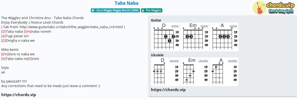 ( Tab from: http://www.guitartabs.cc/tabs/t/the_wiggles/taba_naba_crd.html )