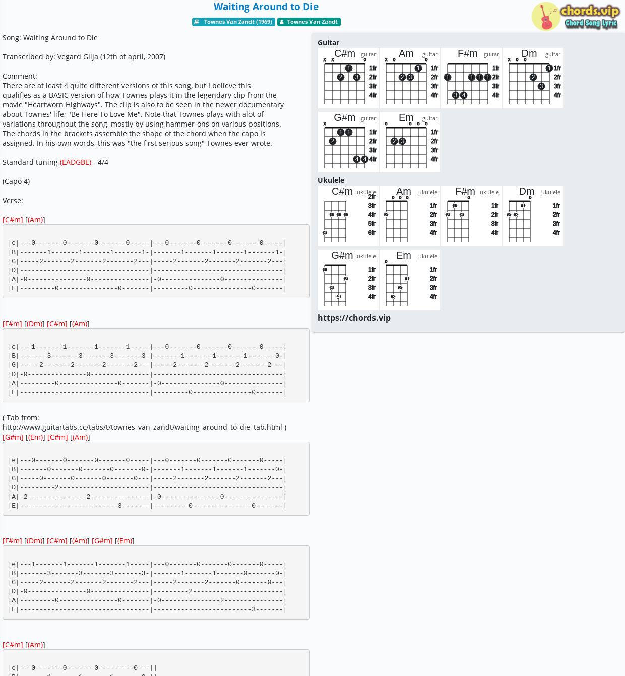 ( Tab from: http://www.guitartabs.cc/tabs/t/townes_van_zandt/waiting_around_to_die_tab.html )
