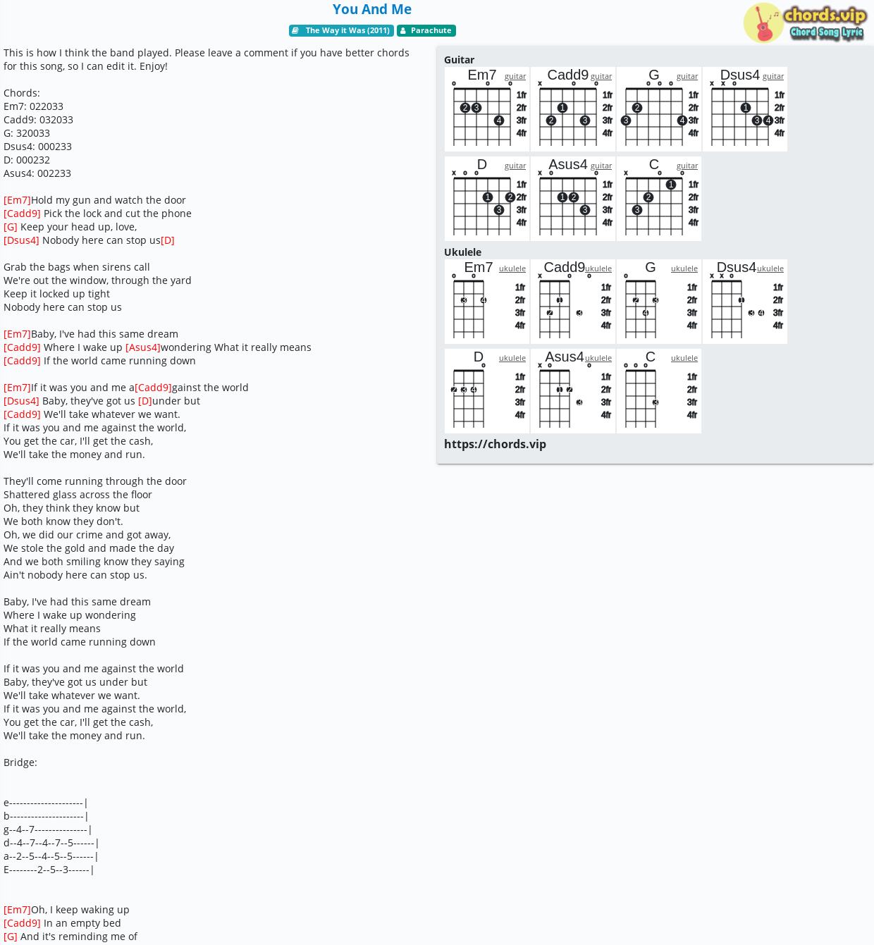 Em7If it was you and me aCadd9gainst the world