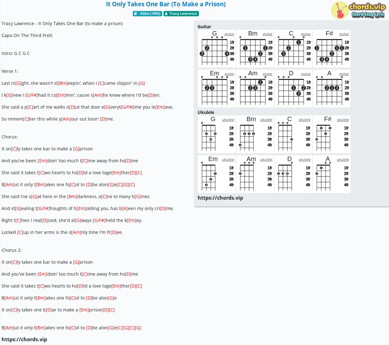 Tracy Lawrence - It Only Takes One Bar (to make a prison)