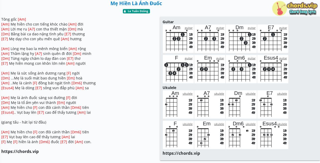 F Mẹ F hiền là ánh [Dm6] đuốc E7 đời Am con.