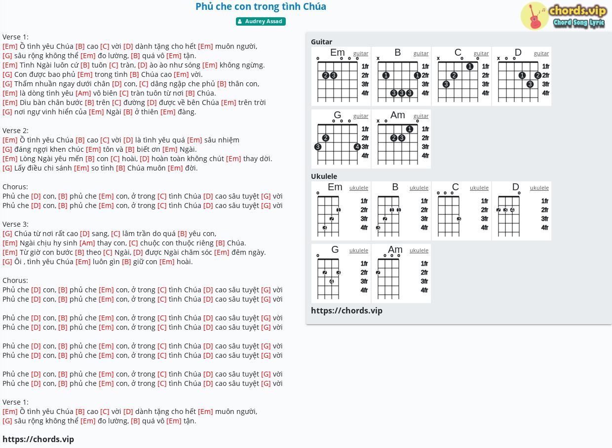 Phủ che D con, B phủ che Em con, ở trong C tình Chúa D cao sâu tuyệt G vời