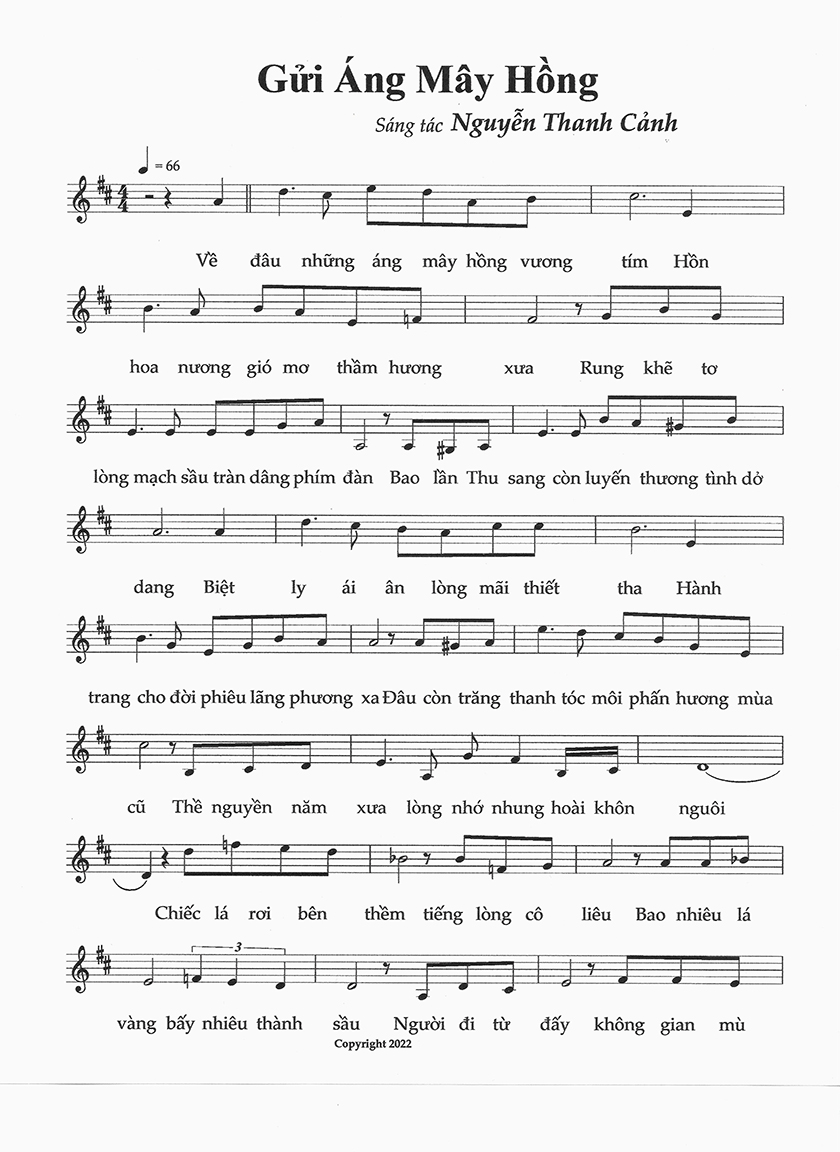 Sheet bản nhạc bài hát: Gửi áng mây hồng