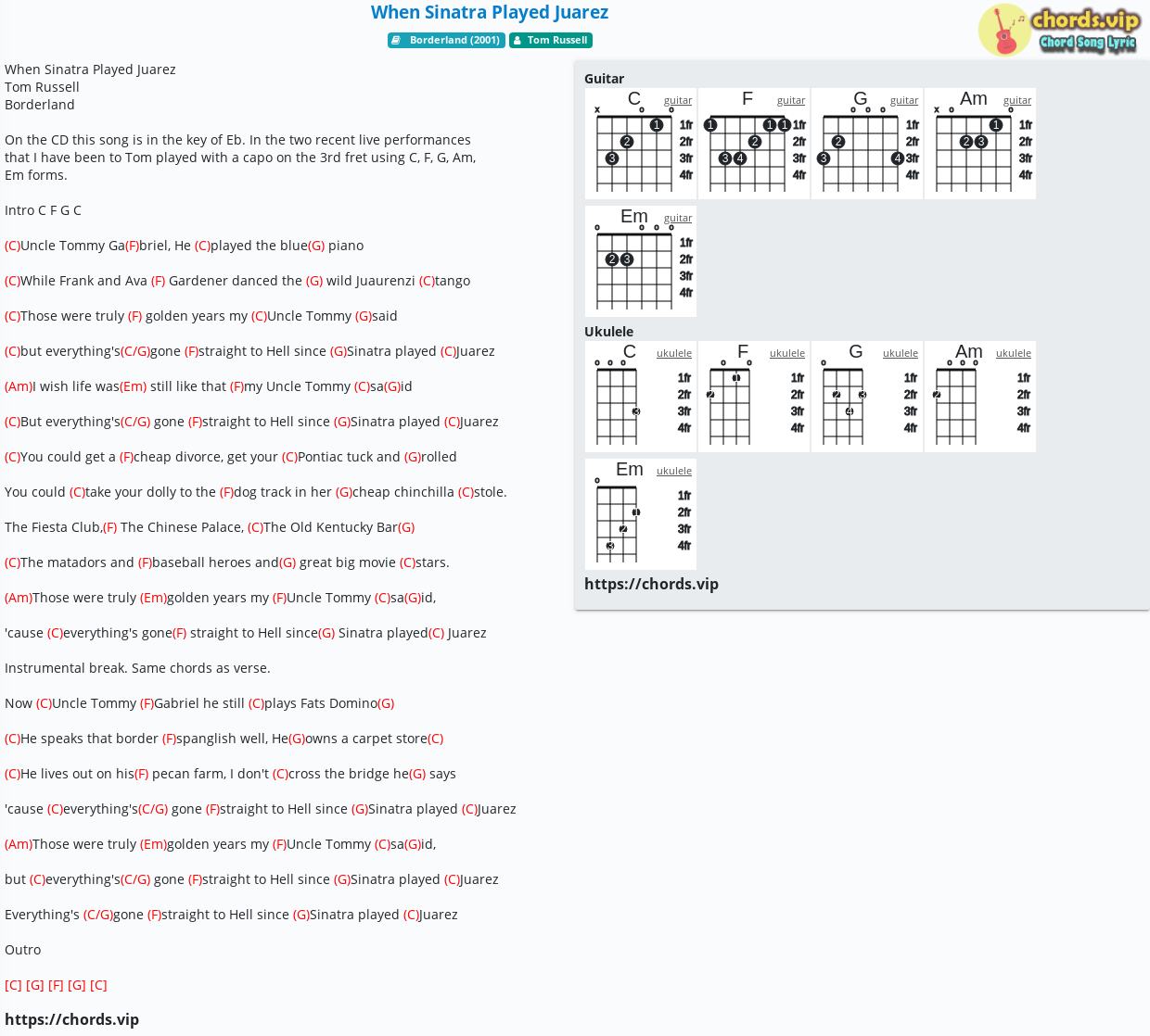 'cause Ceverything's goneF straight to Hell sinceG Sinatra playedC Juarez